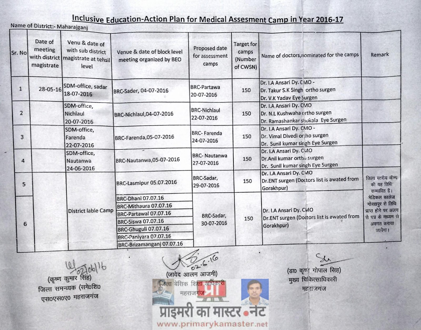 महराजगंज : समस्त बी इ ओ,ए बी आर सी, एन पी आर सी एव प्र0अ0 जरूर पढ़े मेडिकल अससेस्मेंट कैंप वर्ष 2016-17 विकलांग बच्चों की जाँच और उपकरण वितरण की कार्ययोजना विवरण