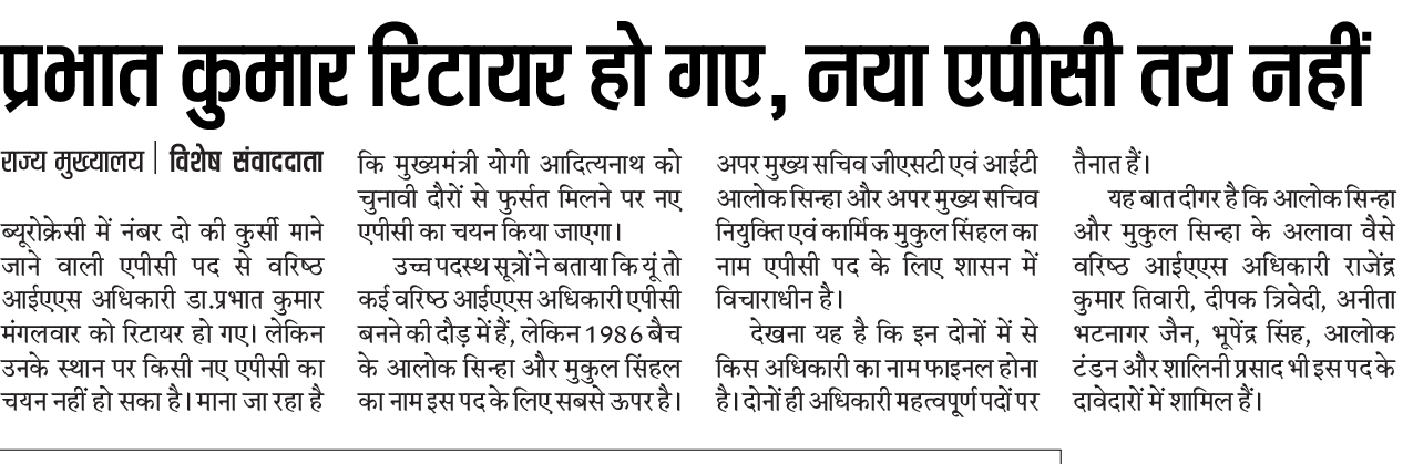 लखनऊ : डॉ प्रभात कुमार रिटायर हो गए, नया अपर मुख्य सचिव (एपीसी) तय नहीं